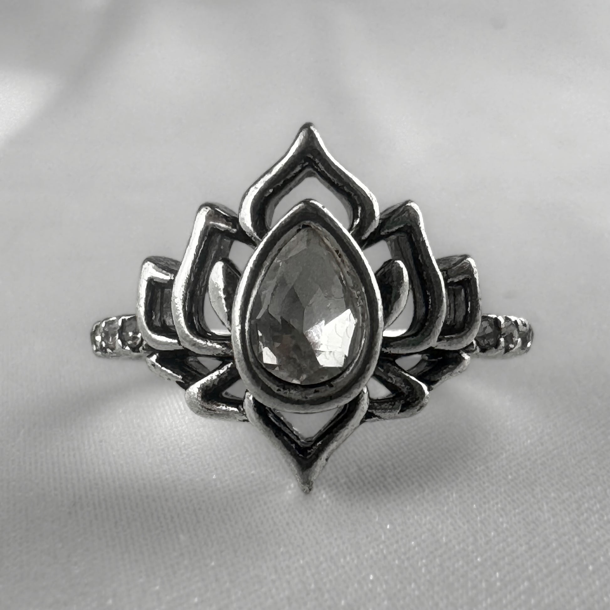 Silver Clear Lotus Flower Ring
