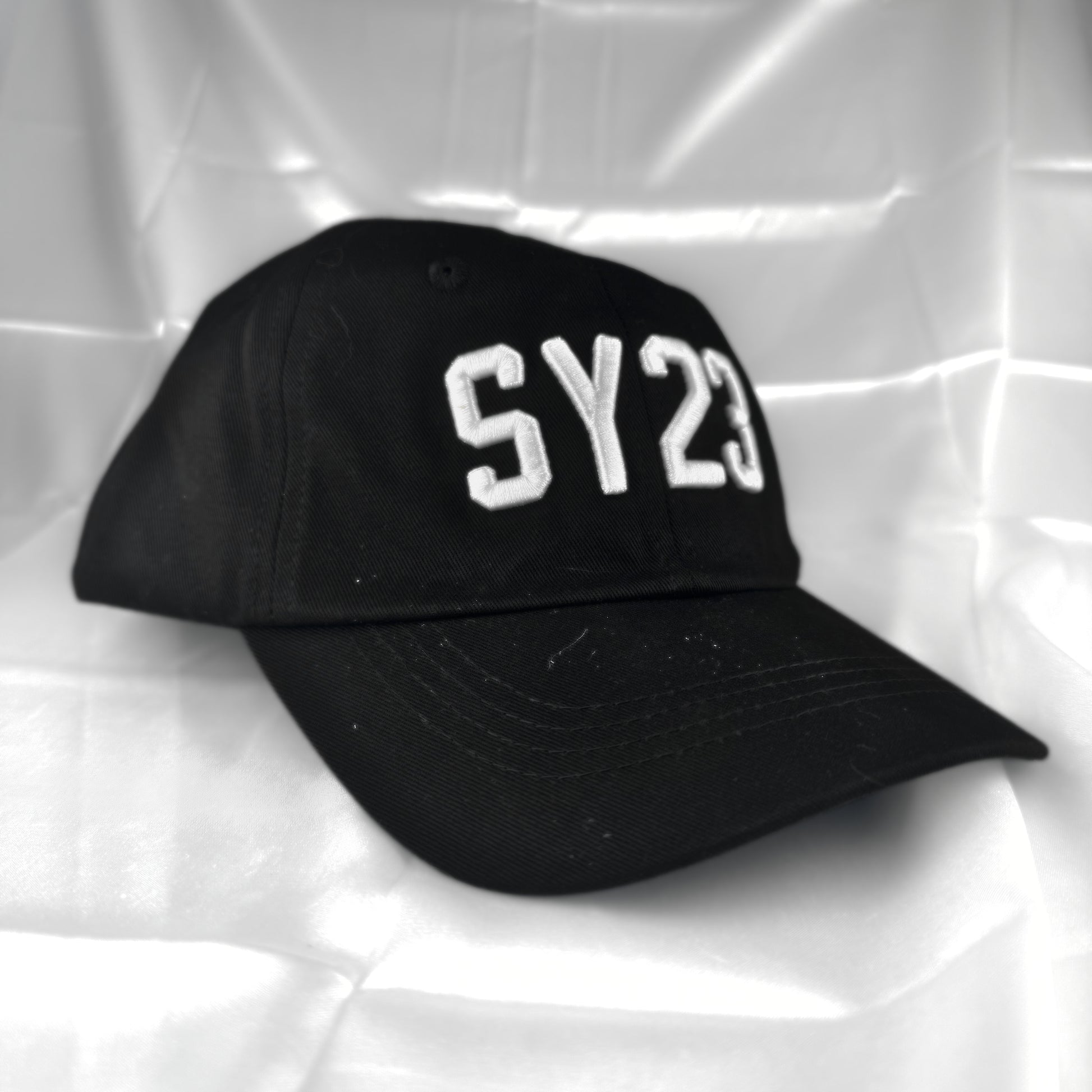 - Charcoal Cotton Hat with White “SY23” Embroidery