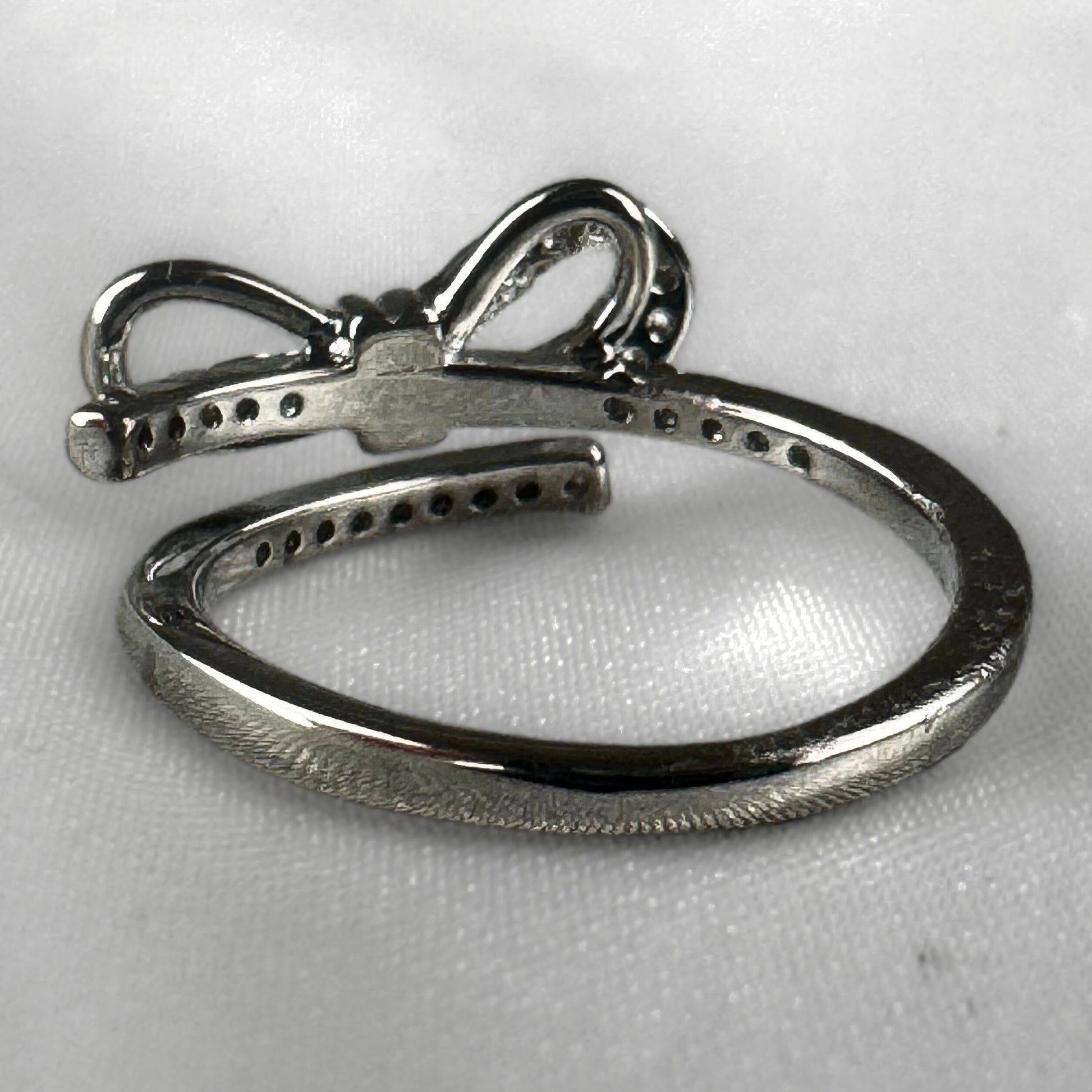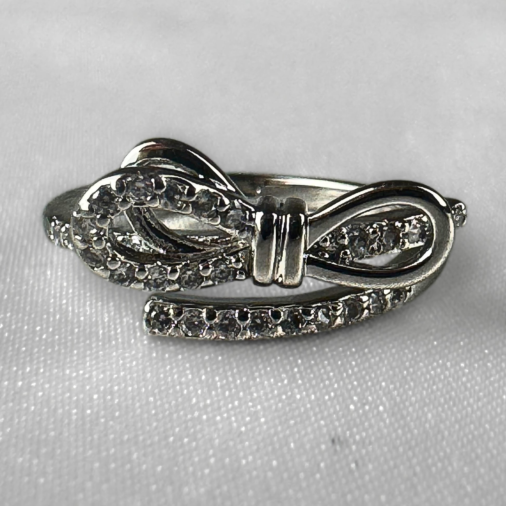 This silver-plated adjustable ring features a delicate, elegant bow design. The adjustable band means it can easily fit any ring size.