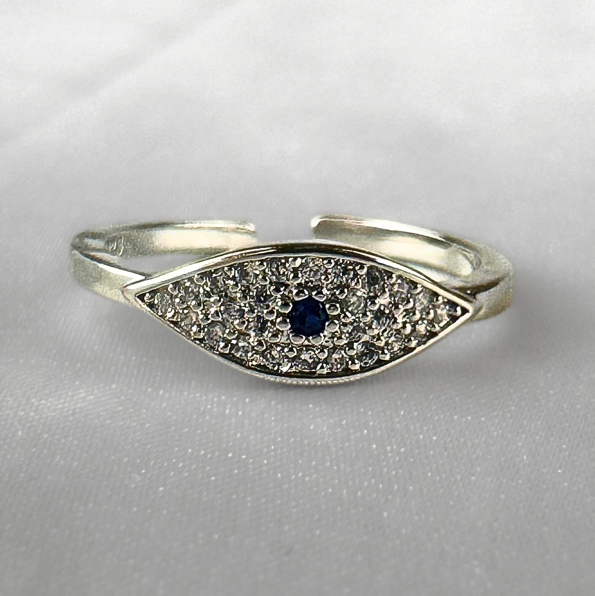 Diamanté Evil Eye Silver Adjustable Ring