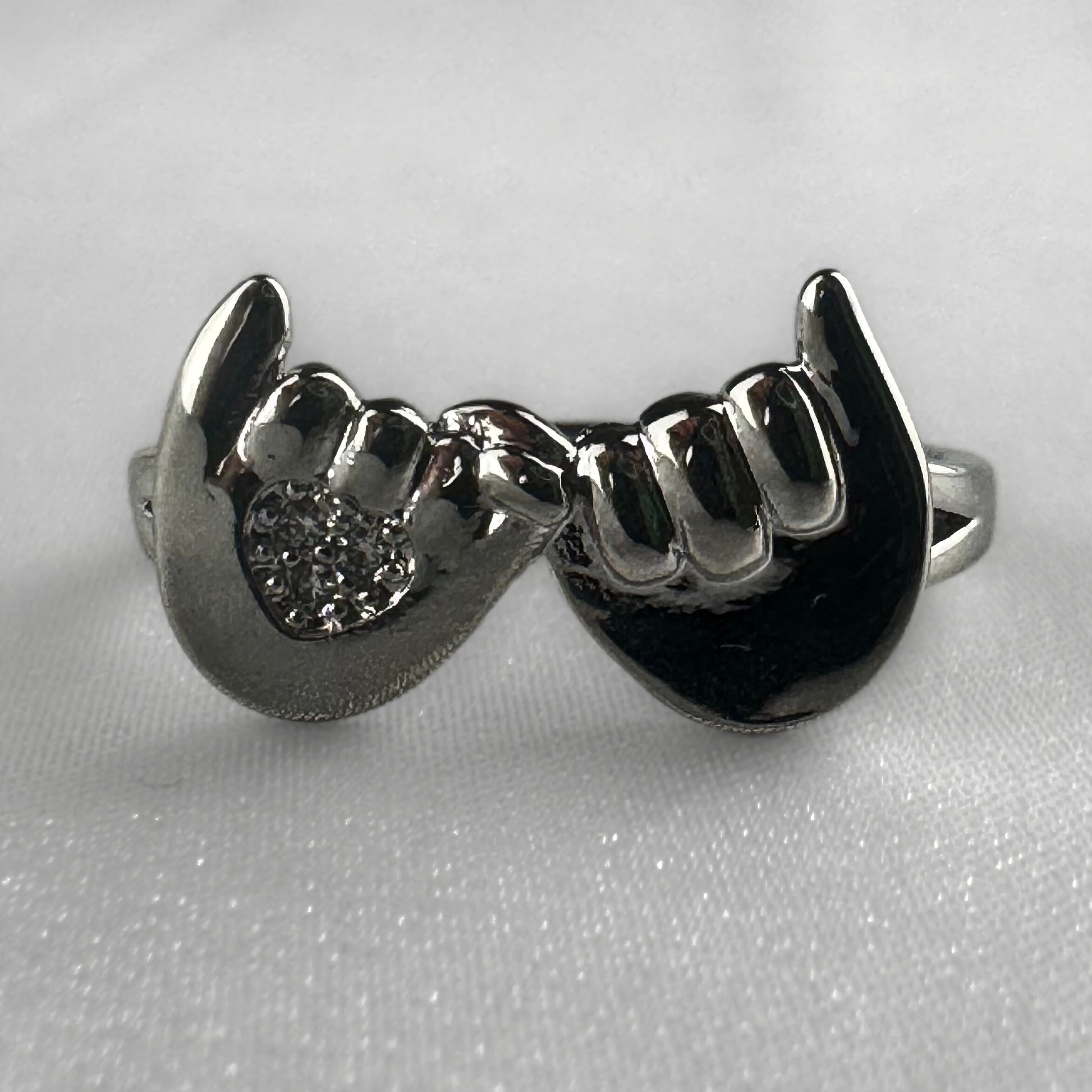 Holding Hands Silver Adjustable Ring