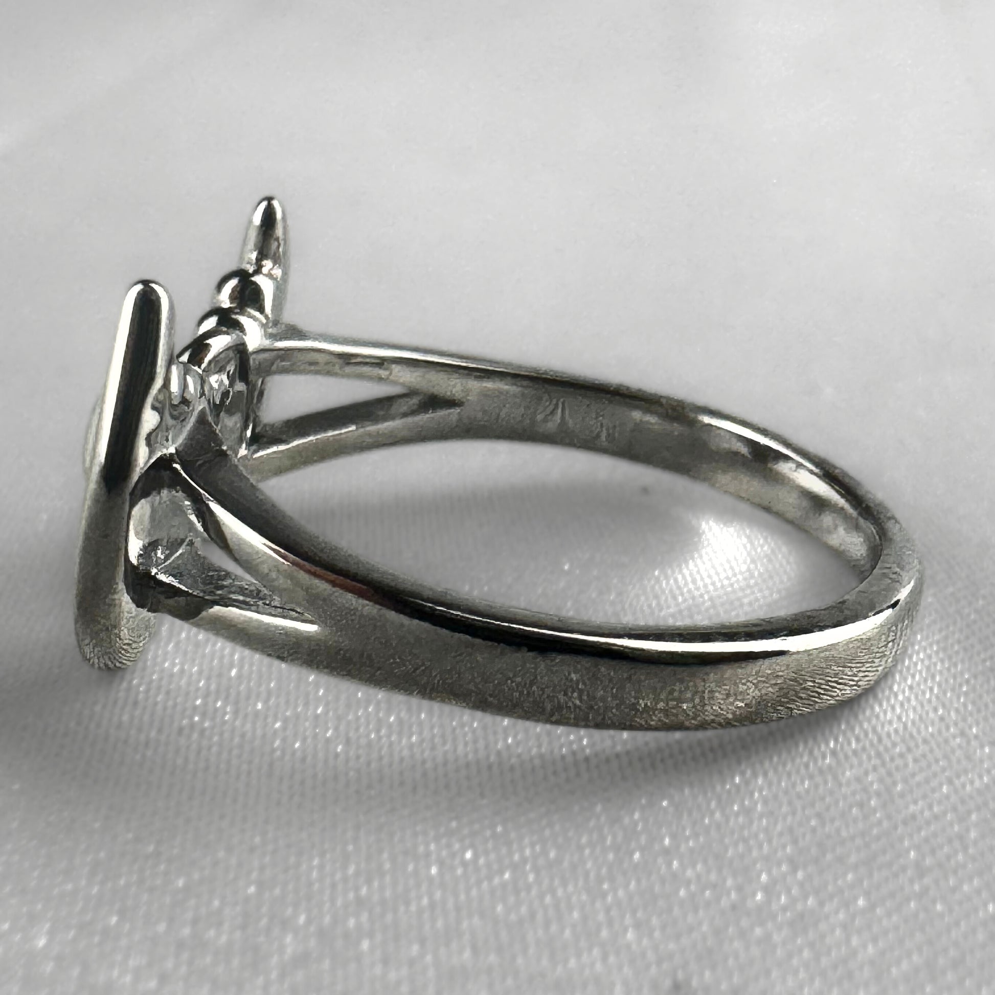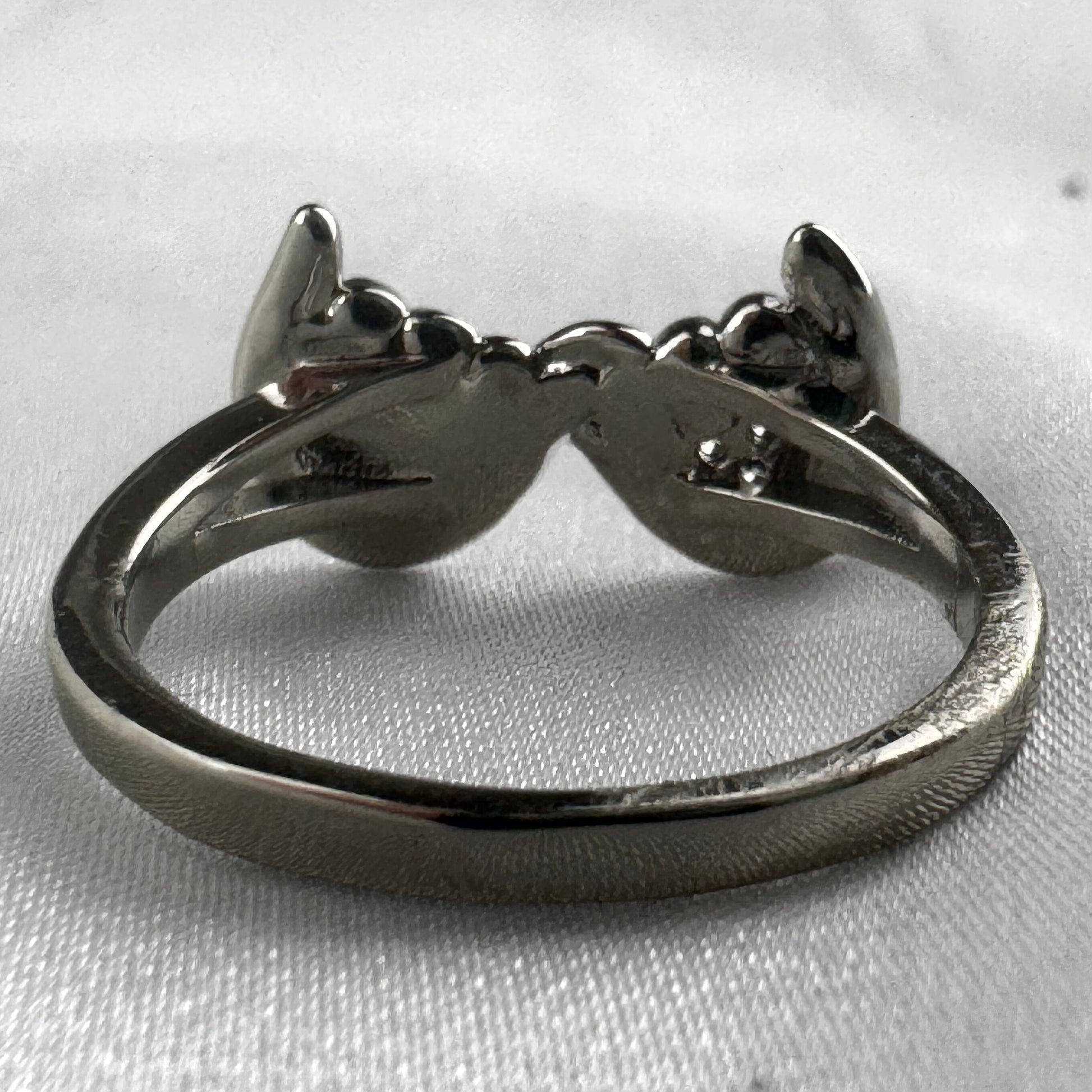 This delicate silver plated ring can be adjusted to accommodate any ring size.