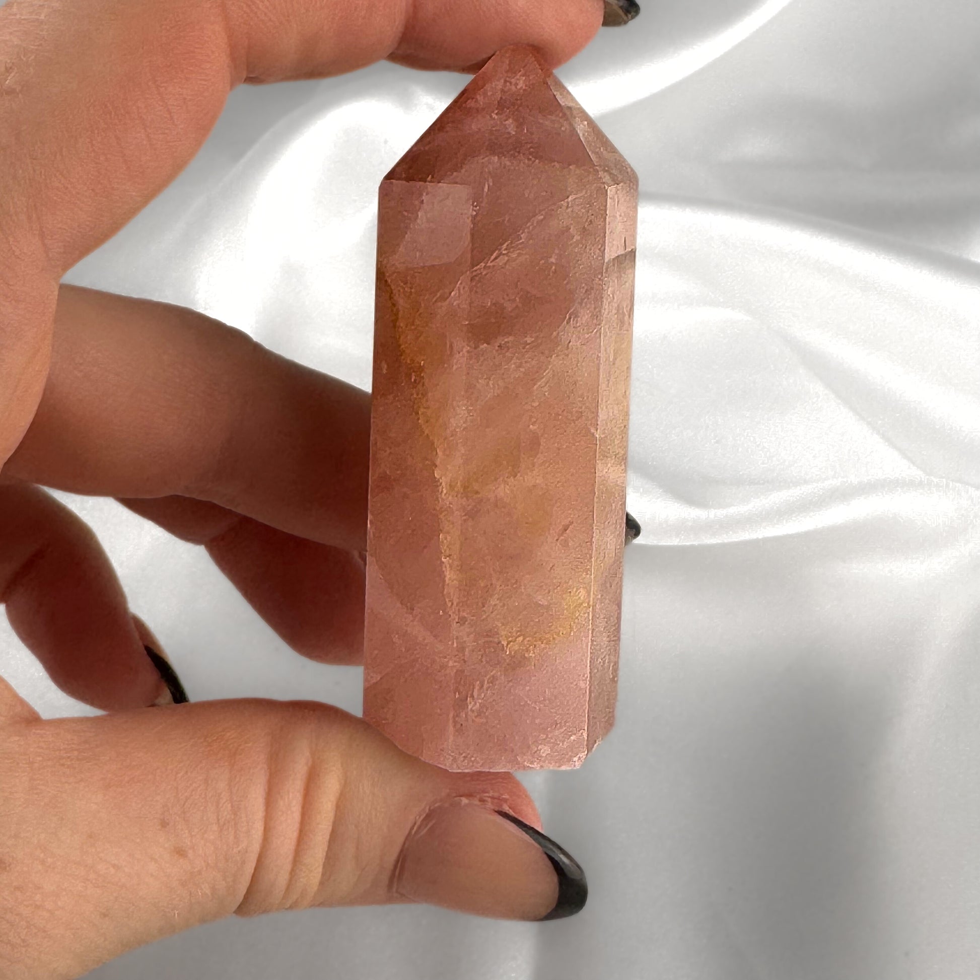 Expertly crafted from pure rose quartz, this small point is the perfect addition to any crystal collection. Known for its calming and soothing properties, rose quartz is said to promote love, compassion, and emotional healing. With its delicate pink hue and smooth surface, this rose quartz point is a beautiful and beneficial tool for relaxation and self-care.