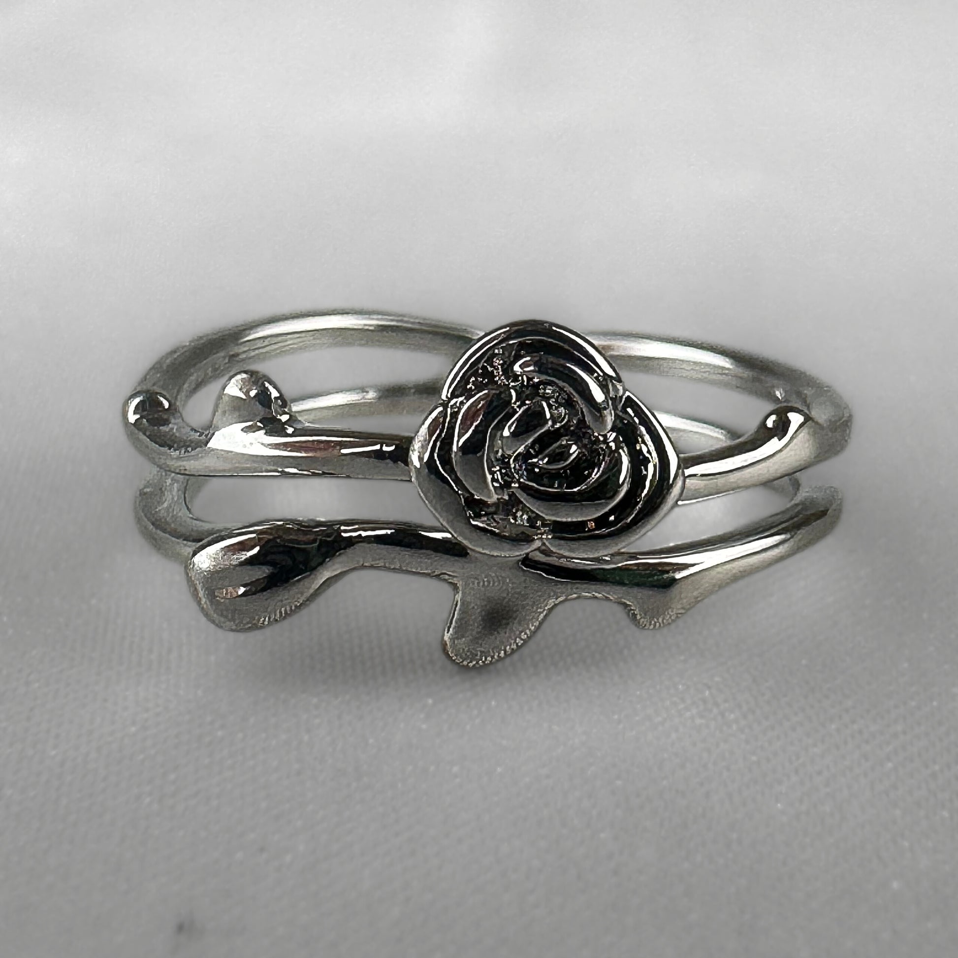 This silver-plated adjustable ring with a beautiful rose and thorn design is the perfect addition to any jewellery collection. Made with high-quality materials, it has an adjustable wrap band for a comfortable fit for all ring sizes.